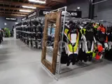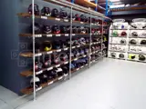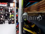Interclamp fittings have been used in conjunction with scaffolding boards for shopfitting to create an Industrial Design look for a motorcycle accessory retailer.