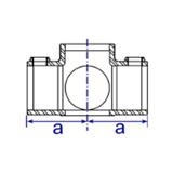 Designed to form a 90° joint between an upright which passes through the fitting and four other tubes. Usually used in the middle of larger structures such as self-contained play areas. The through tube (vertical in photo) cannot be joined within the fitting.